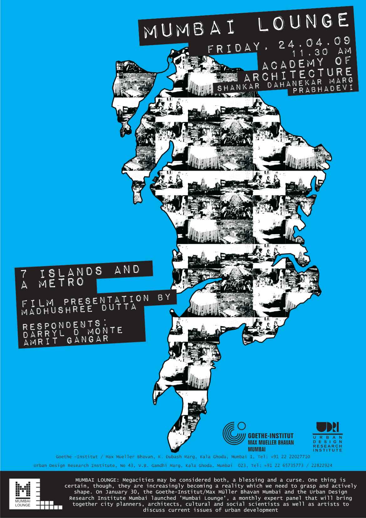 The multilingual Bombay, the Bombay of intolerance, the Bombay of closed mills, of popular culture, sprawling slums and real estate onslaughts, the metropolis of numerous ghettos, the El Dorado. This film is a tale of the cities of Bom Bahia/Bombay/Mumbai, through a tapestry of fiction, cinema vérité, art objects, found footage, sound installation and literary texts. Within the context of an engorged metropolis, fast approaching a saturation point not only with infrastructure support but also an inundated social and ineffectual political machine, the Mumbai Lounge is conceived as an urban discourse to facilitate theoretical criticism and practical ideas and thus broaden the understanding of our urban environment- both the tangible and abstract and enable greater public participation and generate dialogues with governing and non-governing agencies.